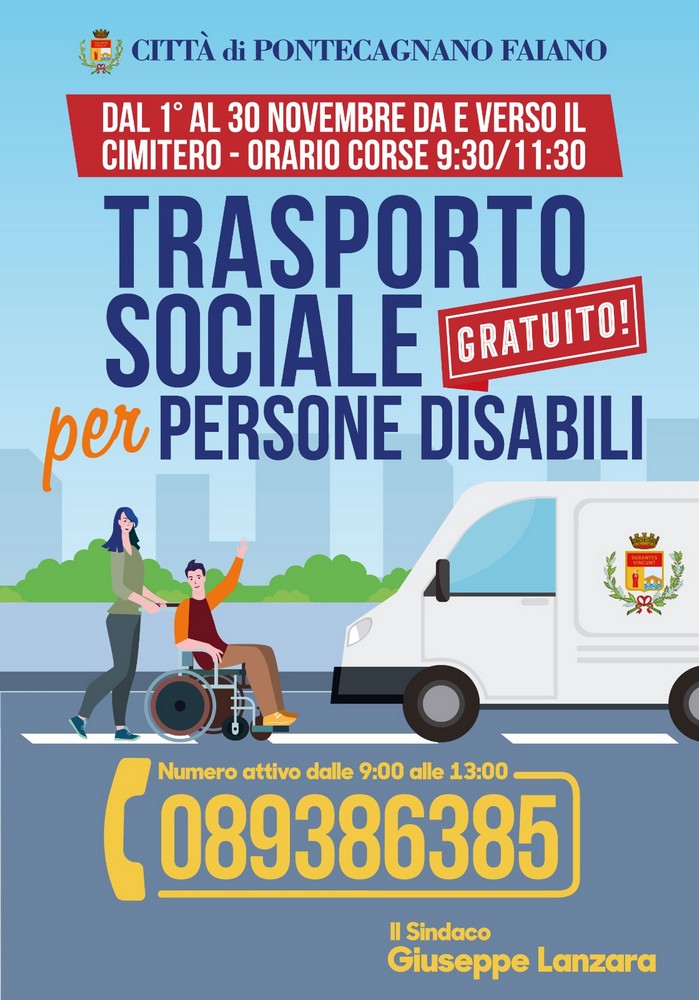 Per tutto il mese di novembre il Comune di Pontecagnano Faiano garantisce il trasporto gratuito per persone disabili, con tratta da e per il cimitero di Via Pompei.