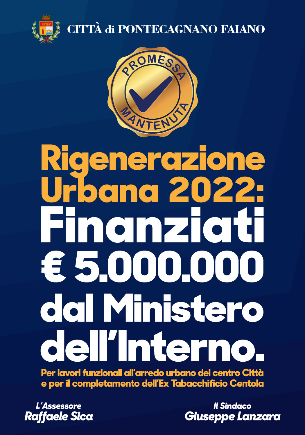 Il Ministero dell’Interno ha infatti concesso al Comune di Pontecagnano Faiano ben 5 milioni di euro per eseguire interventi tesi a garantire il decoro urbano, attraverso un insieme sistematico di opere atte alla conservazione e alla rigenerazione dell’esistente.