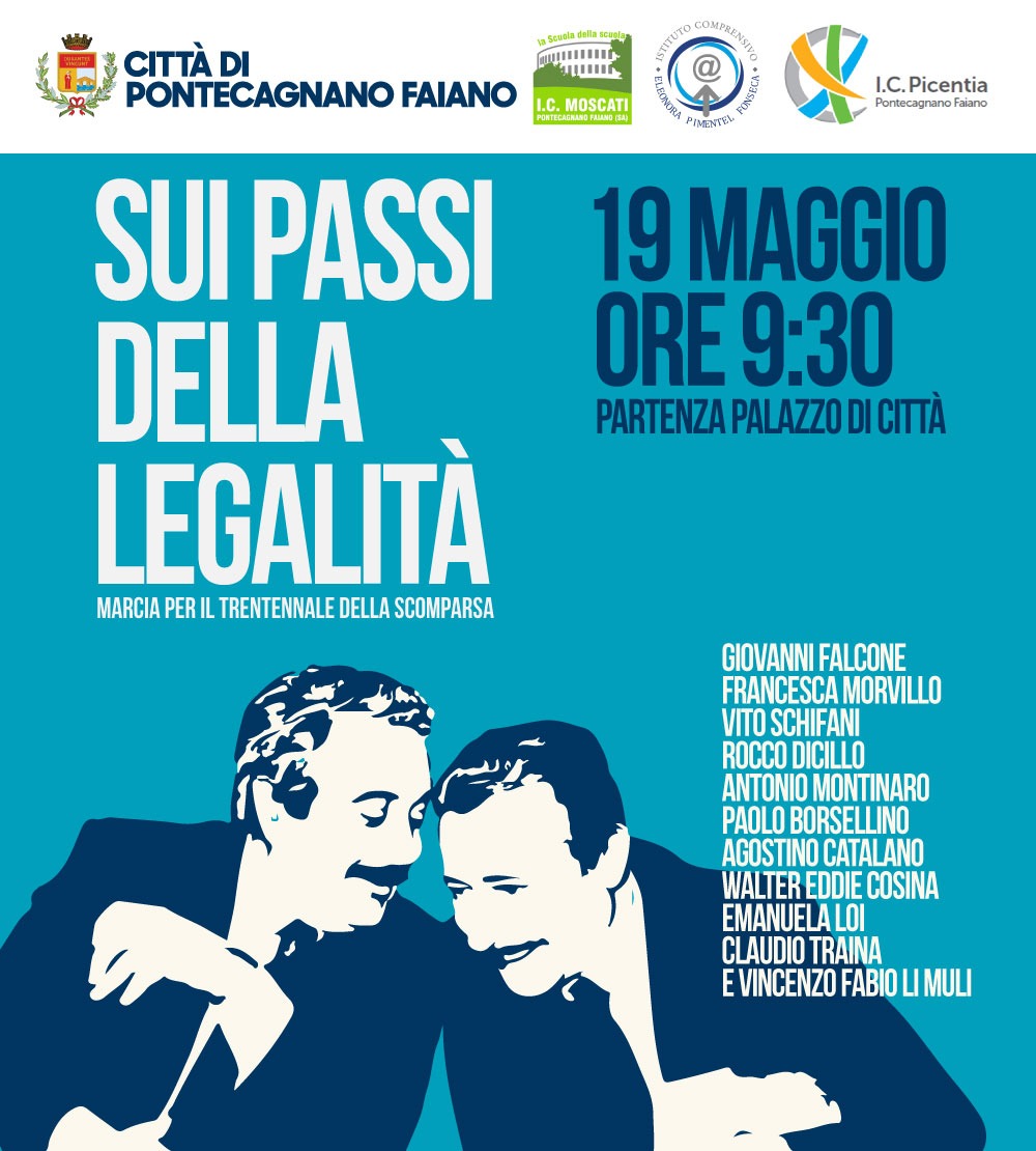 L’iniziativa si svolgerà giovedì 19 maggio a Pontecagnano Faiano, con partenza alle ore 9:30 dal Municipio di Via Alfani ed arrivo presso il monumento dedicato ai due uomini divenuti simbolo della lotta alle mafie sito in prossimità di Via Marconi.