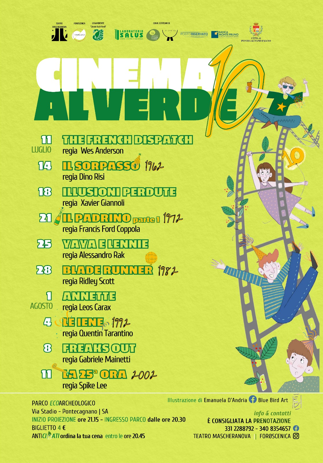“Un’estate da vivere e da scoprire. Questi mesi rappresentano perfettamente la nostra voglia di ricominciare a vivere. Il Comune, le Associazioni ed i singoli cittadini si stanno infatti adoperando al massimo per recuperare le vecchie ed amate tradizioni, non ultima quella di partecipare a Cinema al Verde, un momento straordinario di cultura, convivialità e riflessione. La proiezione dei film, e tutto quello che ne deriva, è un momento irrinunciabile per gli storici spettatori ma anche per chi voglia provare per la prima volta il piacere di godere di un film in un luogo bellissimo, lontano dallo smog e dai rumori”, ha detto l’Assessore alla Cultura Adele Triggiano.