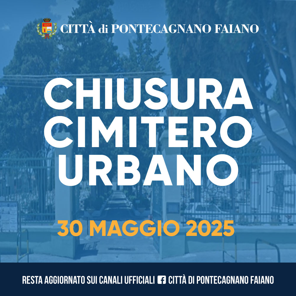 Si informa la cittadinanza che, in via eccezionale, il Cimitero Comunale resterà chiuso nella giornata di venerdì 30 maggio 2025.