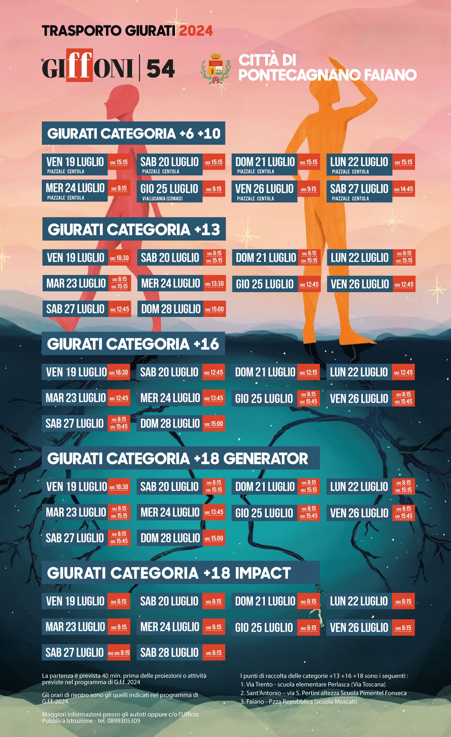 Si riporta di seguito l'organizzazione del servizio di trasporto per il Giffoni Film Festival garantito dal Comune di Pontecagnano Faiano:
